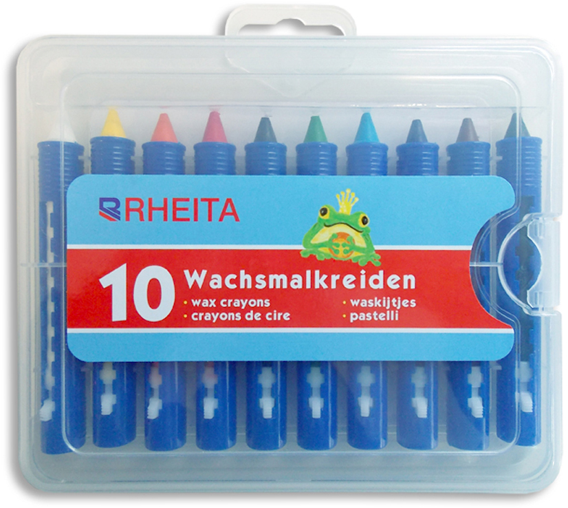 Rheita Wachsmalkreiden in blauer Schiebehülse, wasserfest, 10 Stück im Kunststoffetui,farblich sortiert;