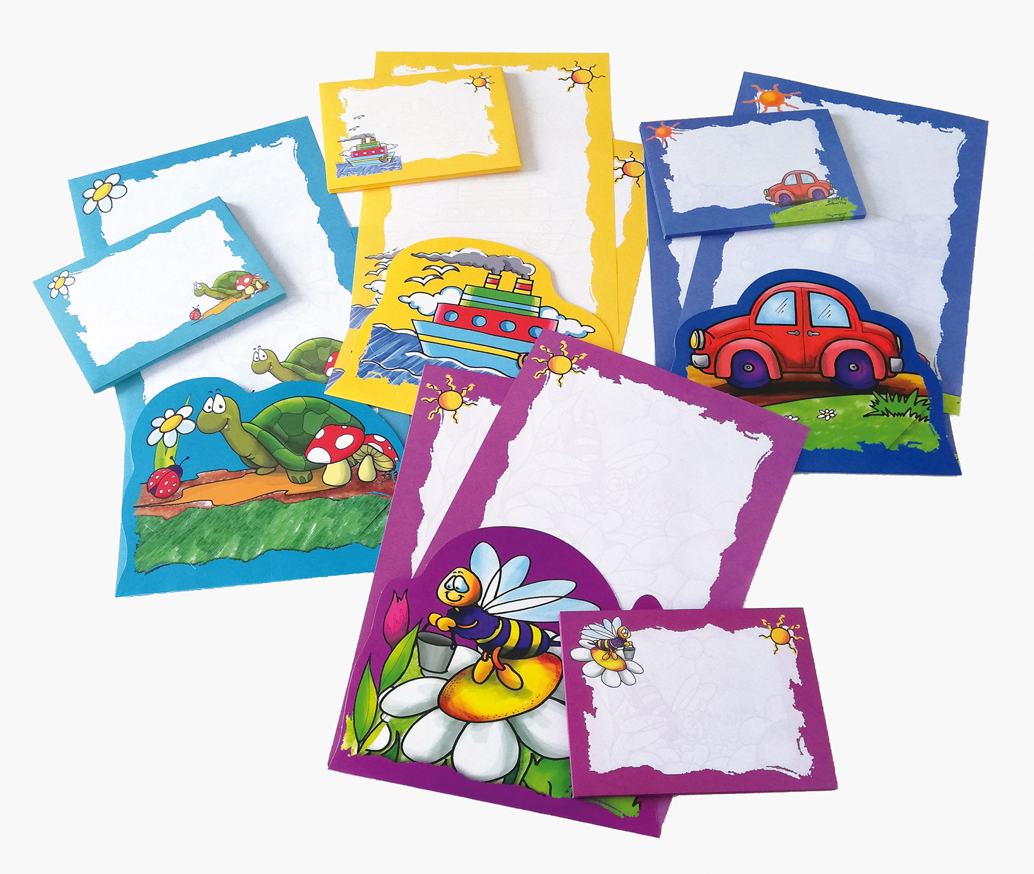 Rheita Briefpapier mit Kindermotiven, 90g/m², 10 Bögen + 8 Umschläge,4 verschiedene Motive sortiert;