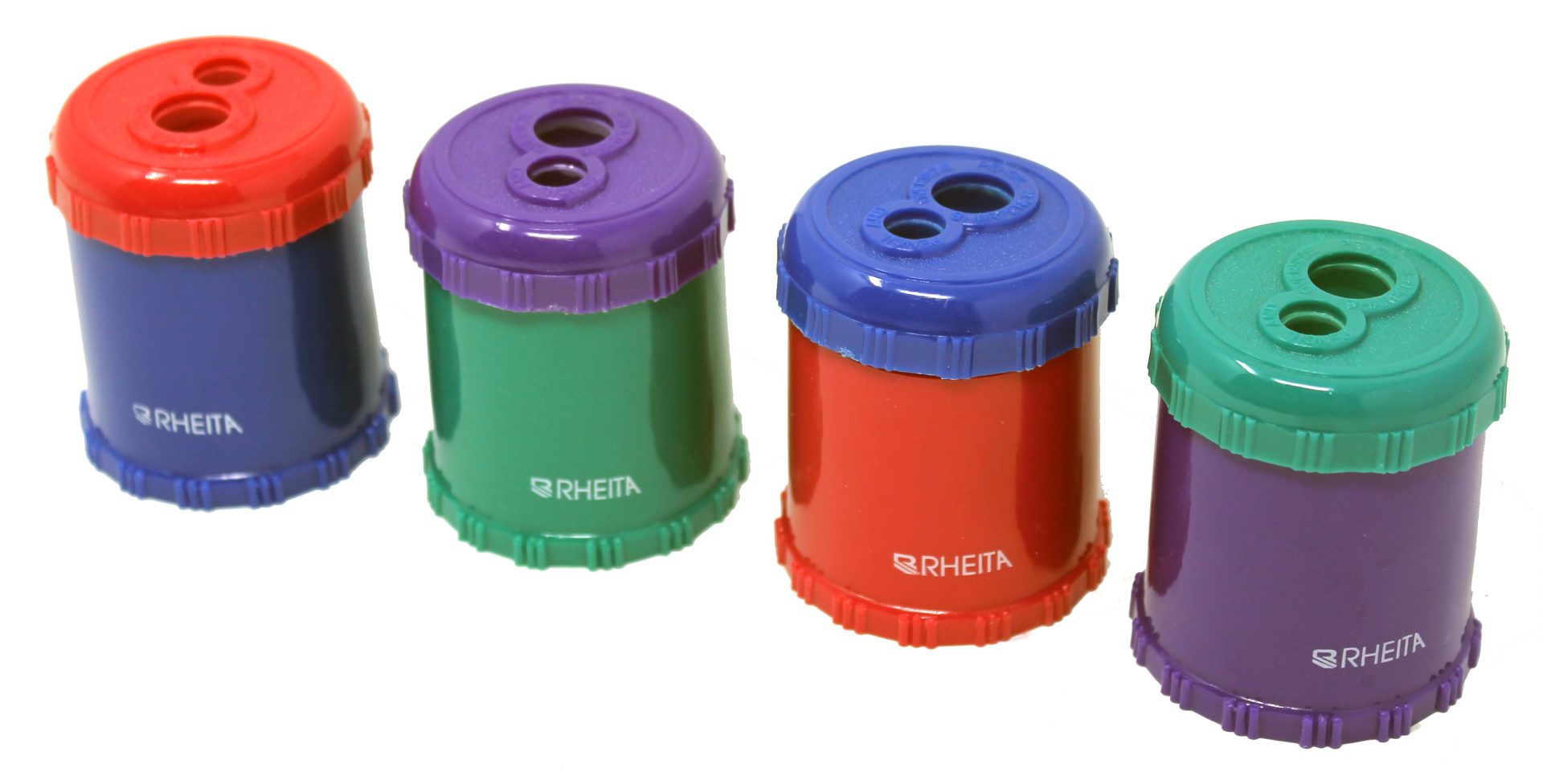 Rheita Doppeldosenspitzer uni mit andersfarbigem Deckel, farblich sortiert, Metallklinge,farblich sortiert;