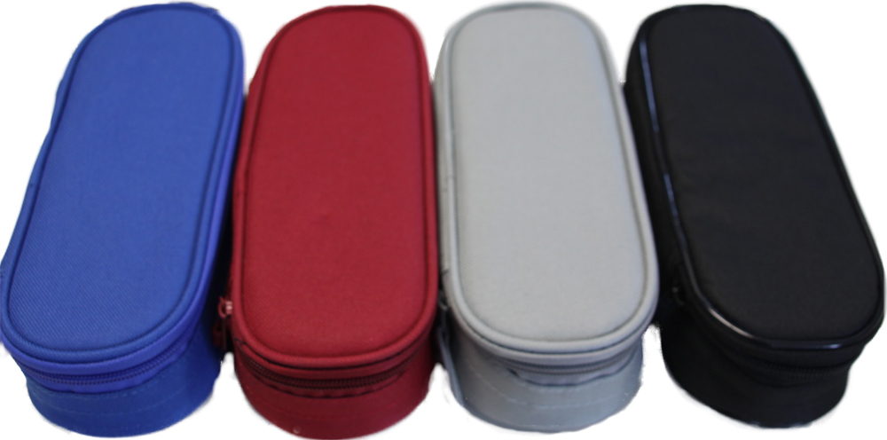 Rheita Faulenzeretui oval, farblich sortiert, abwaschbares Material,schwarz, grau, blau, weinrot;