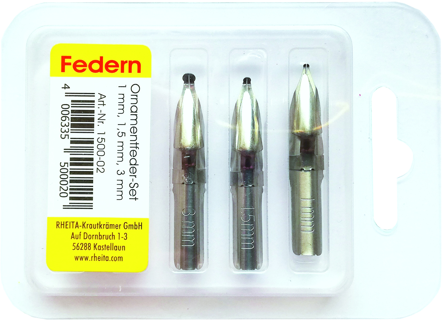 / Rheita Federnset 1 mm 1.5mm 3mm, veschiedene Ornamentfedern, 3 Stück in Klarsichtbox
