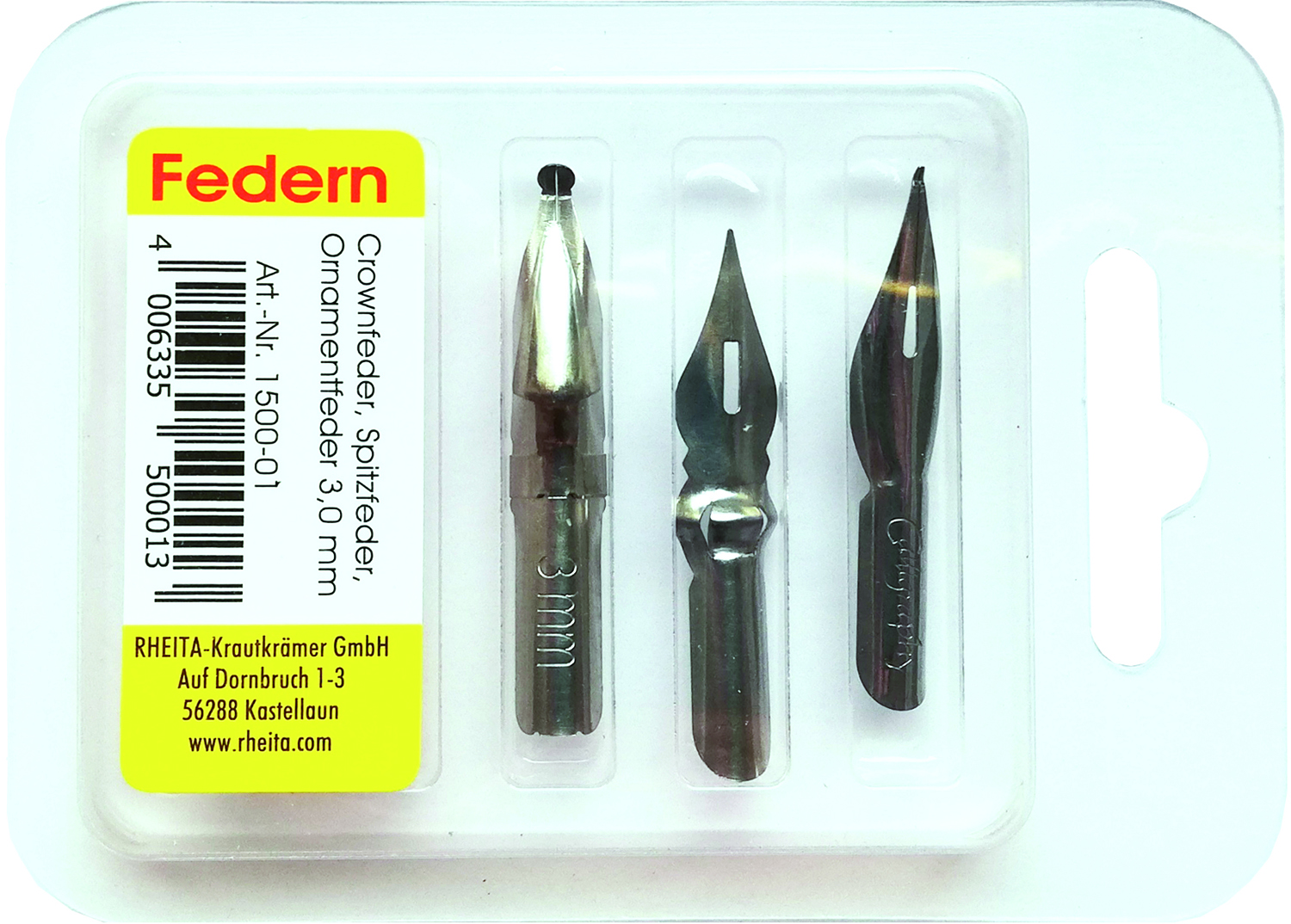 Rheita Federnset 3mm, Crown- Spitz- Ornamentfeder,3 Stück in Klarsichtbox Menge