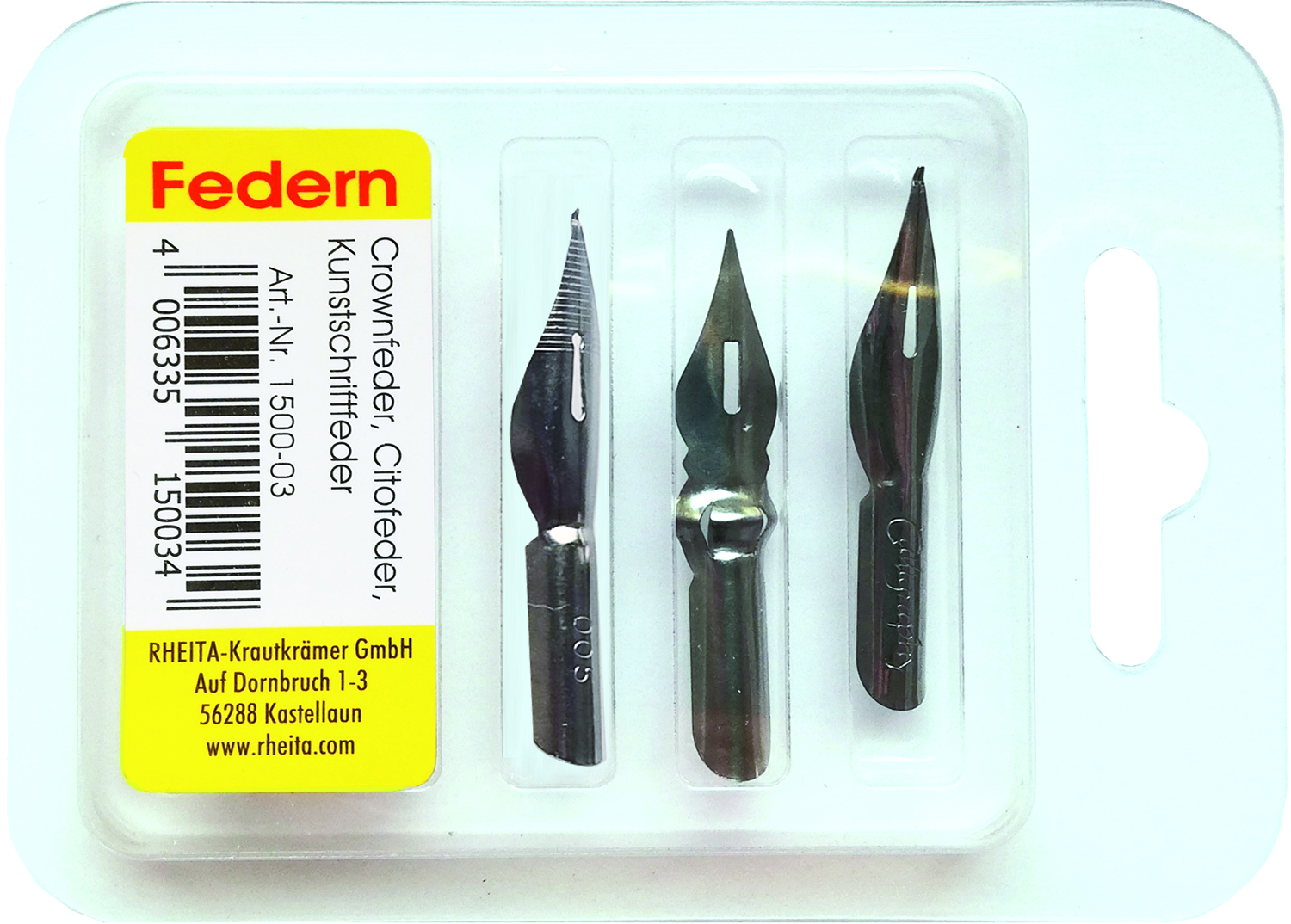 Rheita Federnset, Crown- Cito- Kunstschriftfeder, 3 Stück in Klarsichtbox