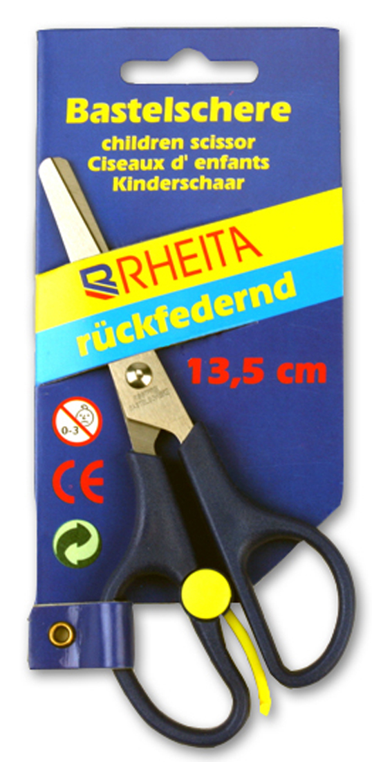 Rheita Kinderbastelschere, farbigem Griff, 13.5 cm, runde Ausführung, Griff rückfedernd,farblich sortiert;13,5 cm