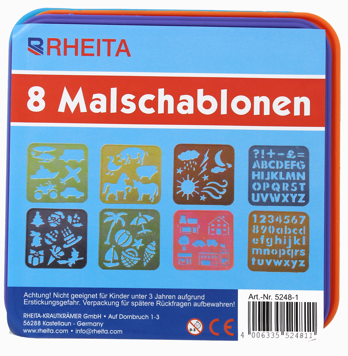 Rheita Malschablonen-Set, 8 verschiedene Themen und Farben pro Pack, ideal für Kinder zum Lernen ,farblich sortiert;15,0 x 15,0 cm