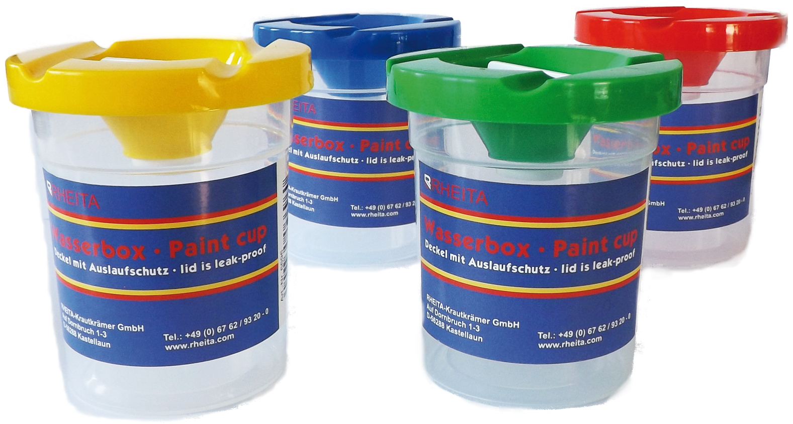 Rheita Pinselbecher aus Kunststoff und Deckel mit Auslaufschutz, farblich sortiert, für ca. 250 ml,farblich sortiert;9,2 x 8,7 x 8,5 cm