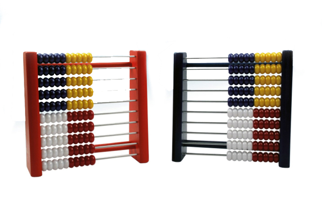 Rheita Rechenzählrahmen aus Holz (Abakus), mit 100 farbigen Perlen,rot, blau sortiert;17,5 x 18,5 x 5,2 cm