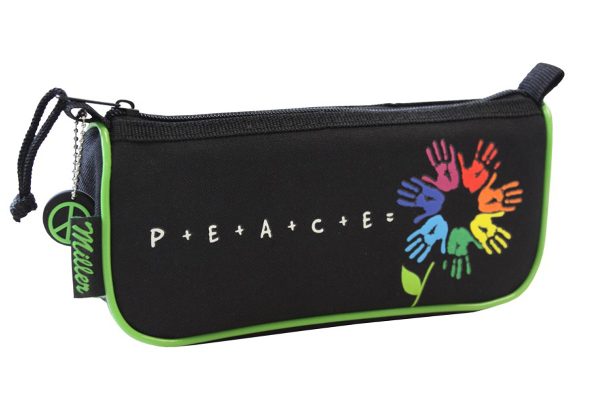 Rheita Schlamperrolle oval, schwarz, Motive „Peace“, abwaschbares Material,schwarz;21,5 cm x 10 cm