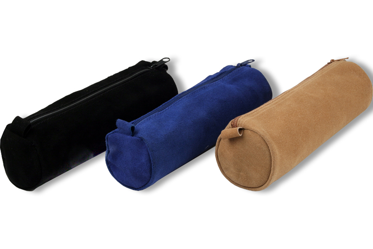 Rheita Schlamperrolle rund aus Velourleder, farblich sortiert,schwarz, blau, natur;20,0 x 5,5 cm