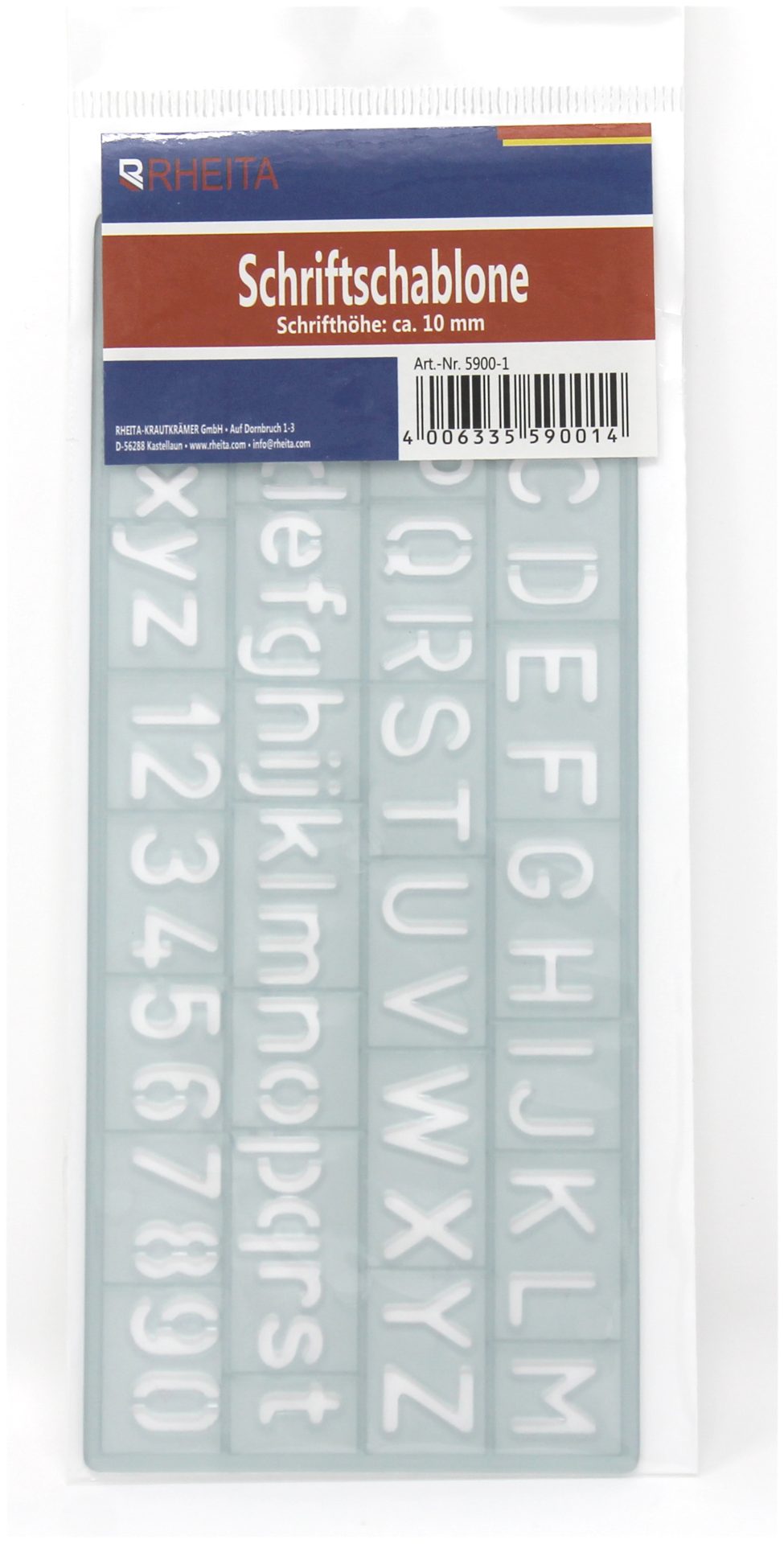 Rheita Schriftschablone, transparent, 10 mm Schrifthöhe, A-Z und 0-9