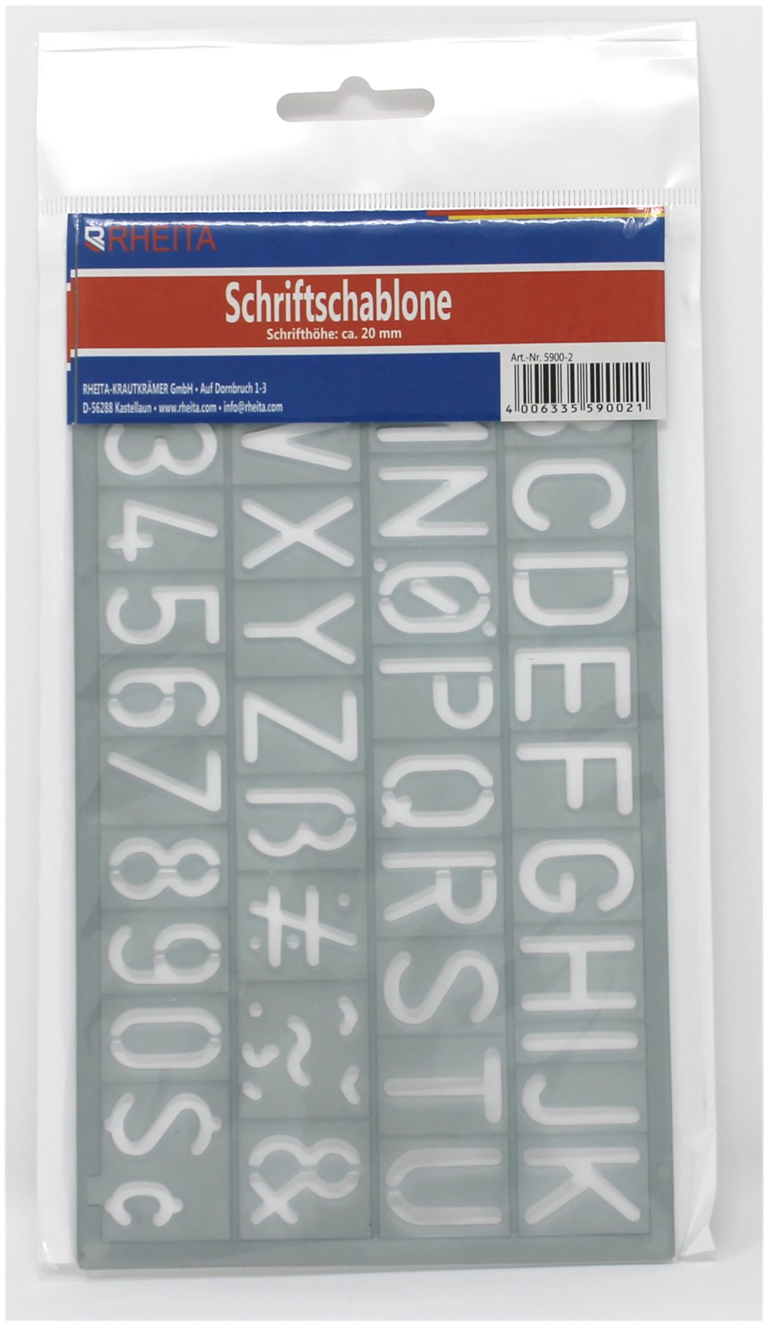 Rheita Schriftschablone, transparent, 20 mm Schrifthöhe, A-Z, 0-9