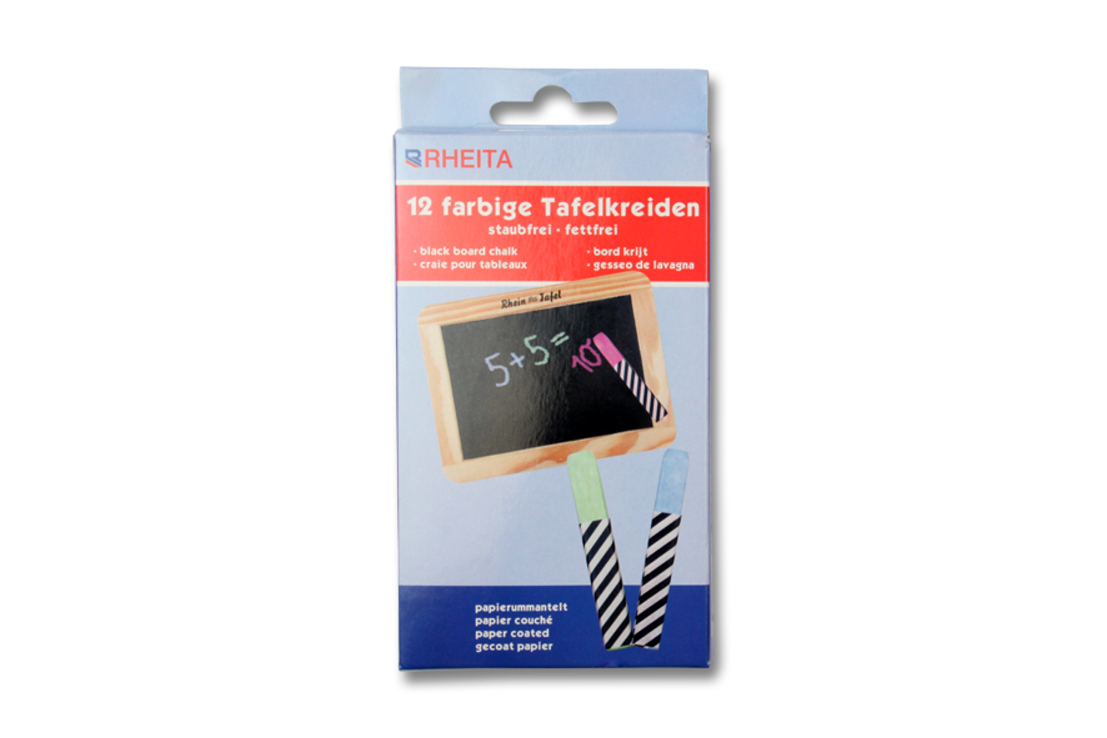 Rheita Wandtafelkreiden papierummantelt eckig, farbig, 12 Stück im Pappetui,farblich sortiert;