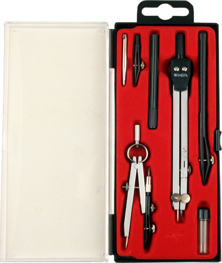 Rheita Zirkelset 8-tlg, schwarz/silber,Bleizirkel, Wendezirkel mit Zahngeradef?hrung, Federeinsatz, Ziehfederschaft, Verl?ngerungsstange, Bleirohr, Ersatzmine,schwarz/silber;